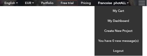 You have access to your "Dashboard", it is possible to "Create a new Project", you can check whether you have a "New message" from photALL and you can "Logout":
