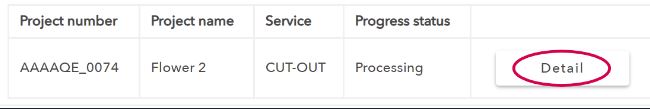 When your Project is done, you will receive an email with a link to check the Output. It is also possible to go to "ORDERS & PROJECTS" in your Dashboard and click on "Detail" on the right of your Project.