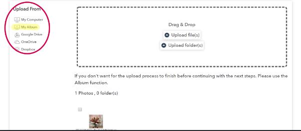 After clicking on "Next", upload your photos. We encourage you to use the function "ALBUMS".