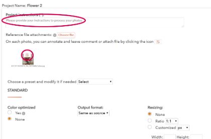 Also note that it is possible to provide special instructions for each photo by clicking on the small icon next to each one. Do not forget to save your comments after you finish: