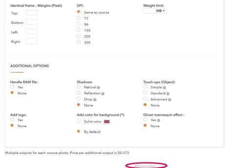 Chose all options needed, if you need several Output formats, click on "Add more output" on the bottom of the page: