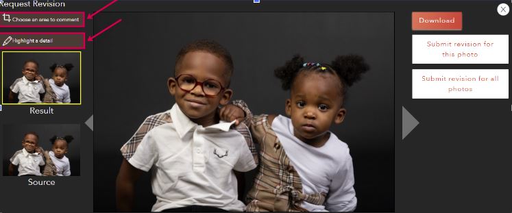 3 - Click "Submit revision for this photo". If the error is repeated on each photo, for example the format is not the one wanted, choose "Submit the revision for all photos".