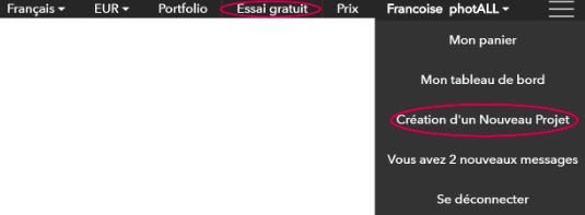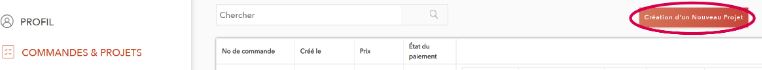 - En sélectionnant "COMMANDES & PROJETS" dans votre "Tableau de bord" puis en cliquant sur "Création d'un Nouveau projet" :
