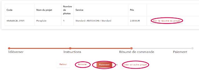Si tout vous semble bon, il vous suffit ensuite de cliquer sur "Paiement", vous avez aussi la possibilité de créer un autre Projet avant de procéder au règlement :