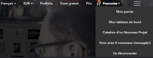 En cliquant sur votre nom en haut à droite, vous avez accès à votre "Panier" pour voir les Projets toujours en cours de création.