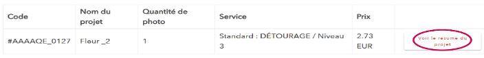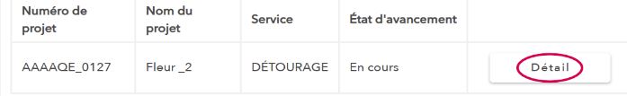 Quand votre Projet est terminé vous recevrez un email avec un lien pour vérifier le Résultat. Il est aussi possible d'aller dans "COMMANDES & PROJETS" et cliquer sur "Détail" à droite de votre Projet :