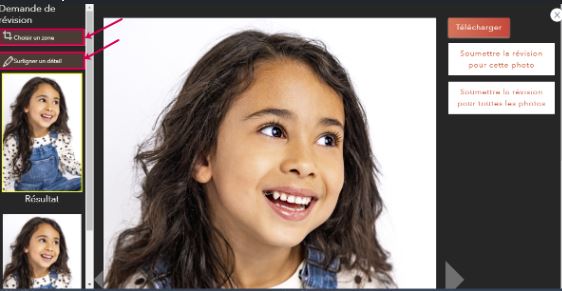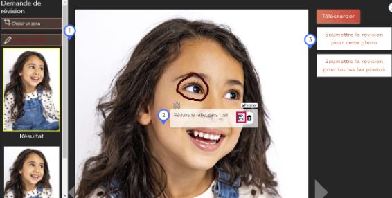 Sur la gauche, 2 outils sont à votre disposition pour sélectionner la ou les zones à revoir :